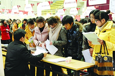 招聘會上,大學生在投遞簡歷 日前,江蘇技術師范學院在該校體育館舉行師資專場招聘會,100余家學校來校招聘畢業(yè)生,為畢業(yè)生提供了近600多個就業(yè)崗位。據(jù)統(tǒng)計,江蘇技術師范學院2011屆畢業(yè)生有3780人,其中師范生531人,用人單位為動手能力強的學生敞開大門。 畢業(yè)生動手能力挺重要 記者在招聘會現(xiàn)場發(fā)現(xiàn),前來招聘的學校既有…